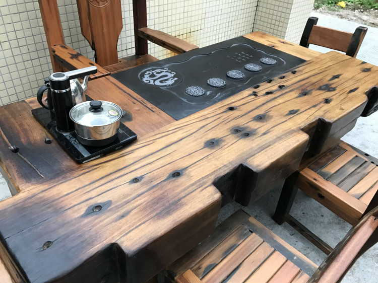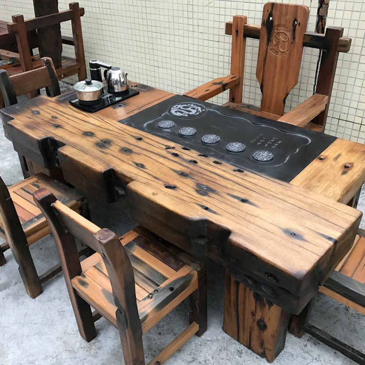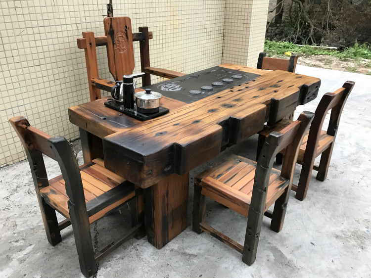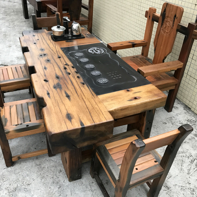 Old boat wood tea table chair combined retro sleeper wooden keel tea table upper type computer cabin wood solid wood furniture with light and luxurious tea a few