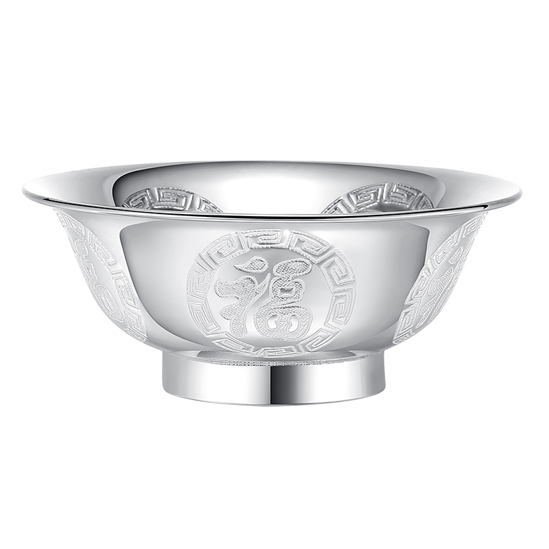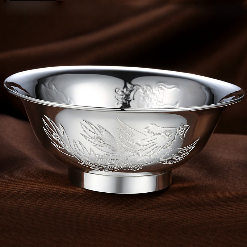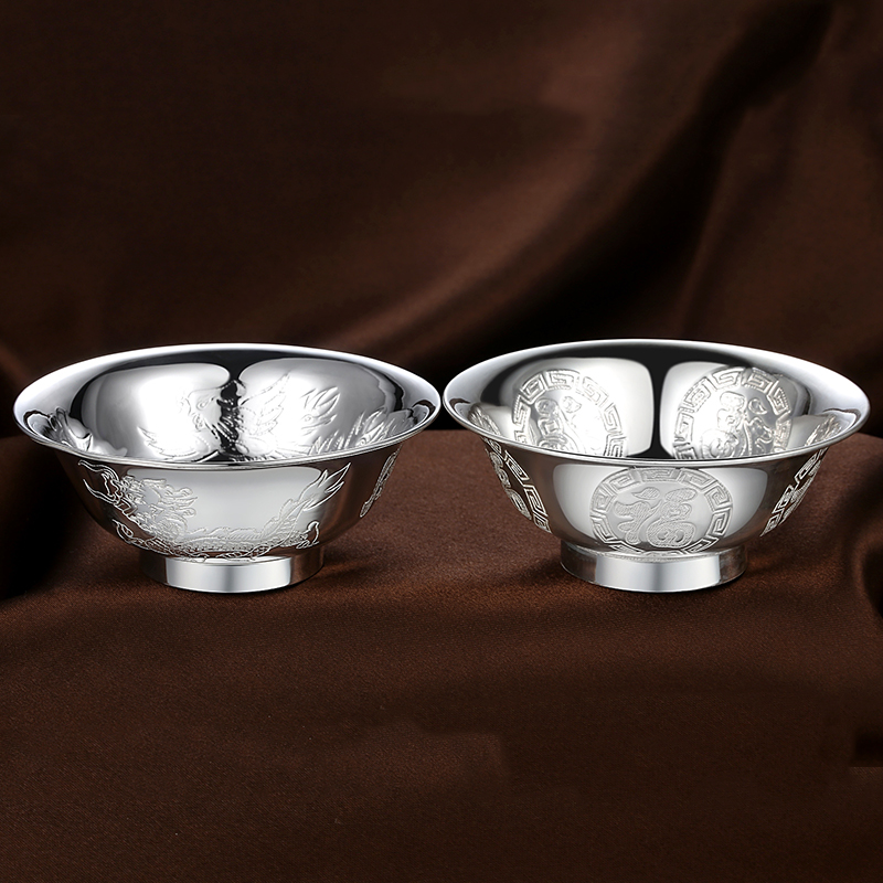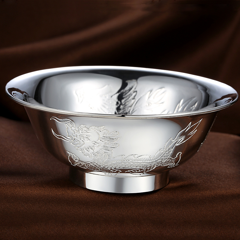 Single-layer silver bowl 999 sterling silver tableware Longfeng Wufu optional edible silver bowl snowflake silver tableware