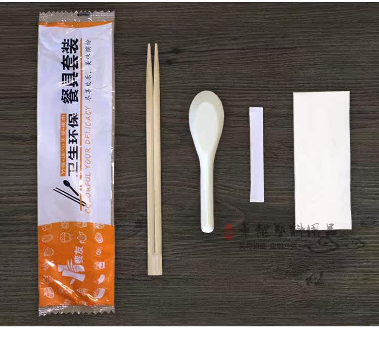 Disposable Carbonated Chopstick Cutlery Sets Pack With Soup Spoon Toothpick Kraft Paper Mold 4-piece kit Composition Outer-delivery fast food