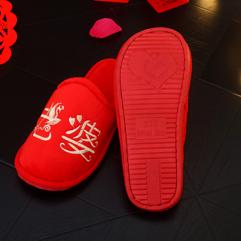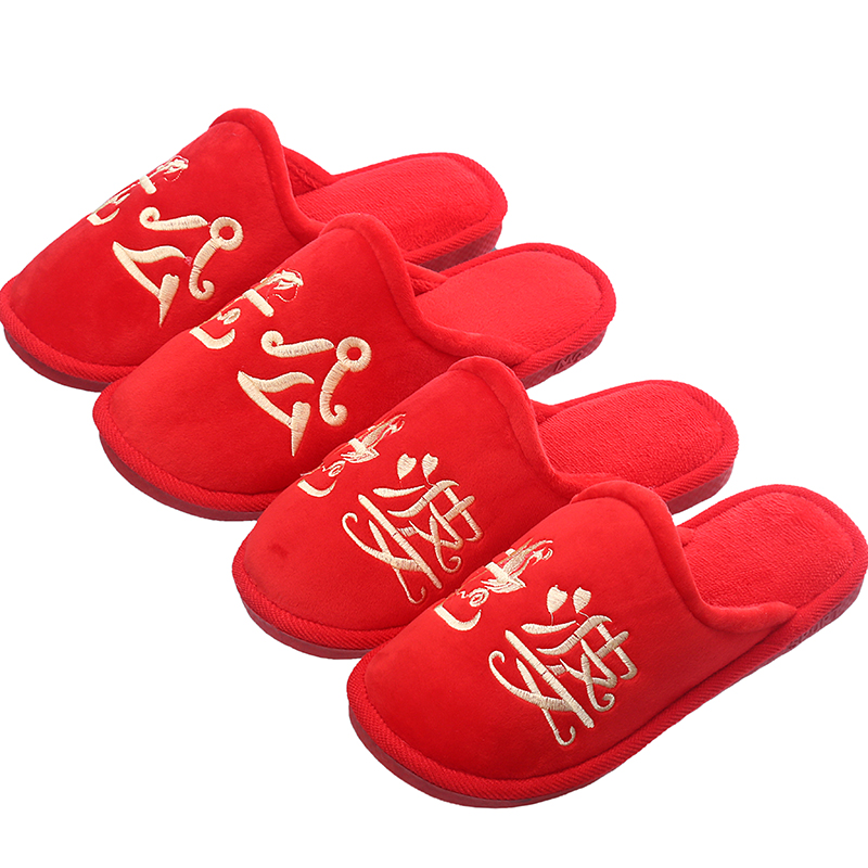 : Dowry bride dowry wedding spring and autumn cotton drag coral velvet husband and wife slippers