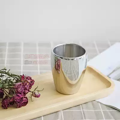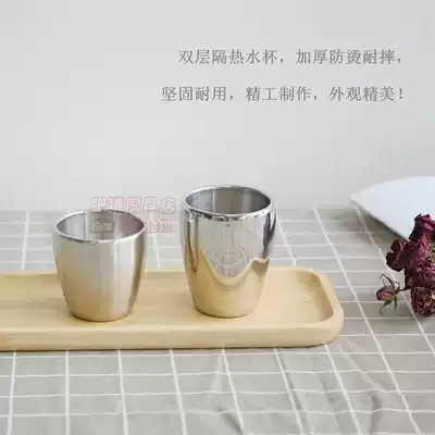 Stainless steel 18 8 double-layer water cup Coffee cup Tea cup anti-scalding double-layer Kung Fu tea children's cup anti-drop fashion