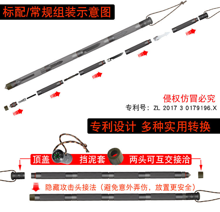 Climbing Stick versatile anti-body stick Tactical stick folding cane with straight grip telescopic climbing roller coaster field anti-body equipment