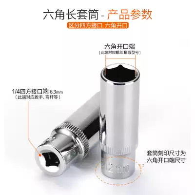 1 4 inch 1 4 inch socket wrench Long socket head Small quick wrench head 7 8 10 14mm Hexagonal small socket head 6 3mm