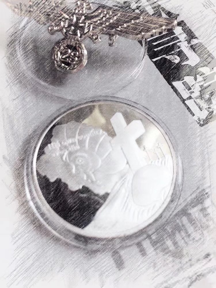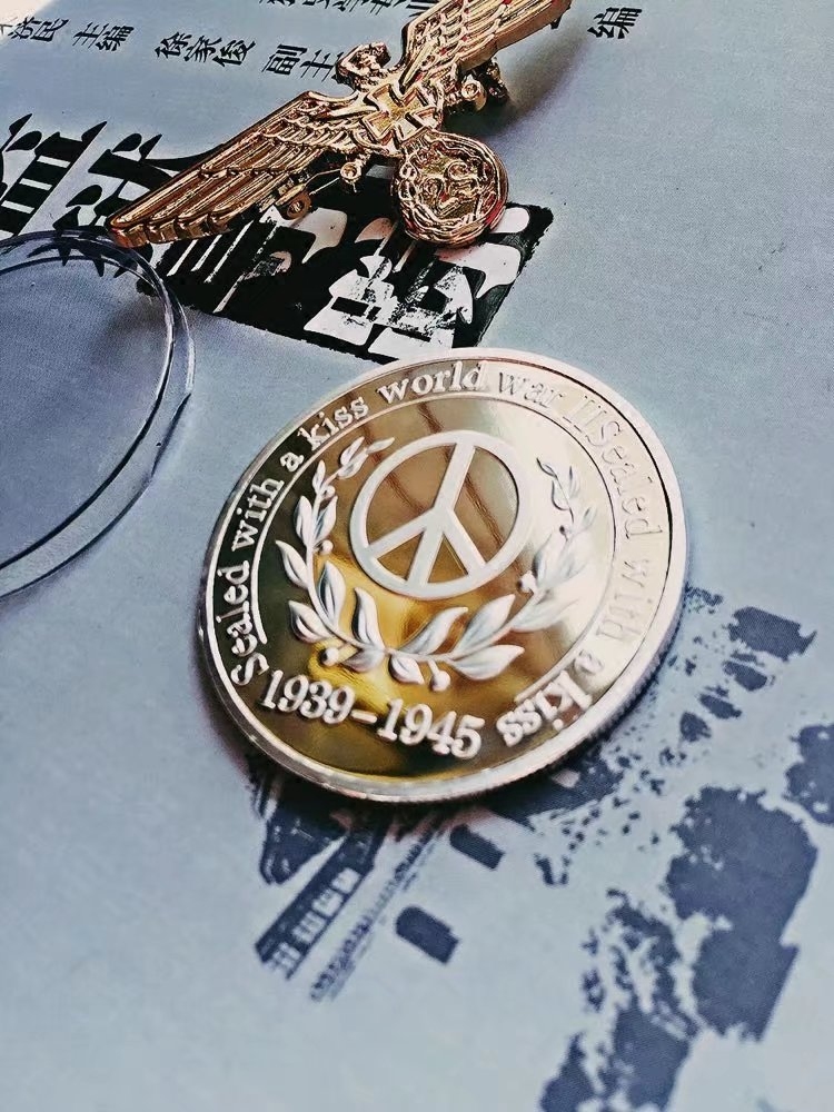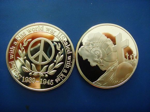 Homemade WW2 Topic World War II Memorial Silver coin to kiss on the letterhead of the country.