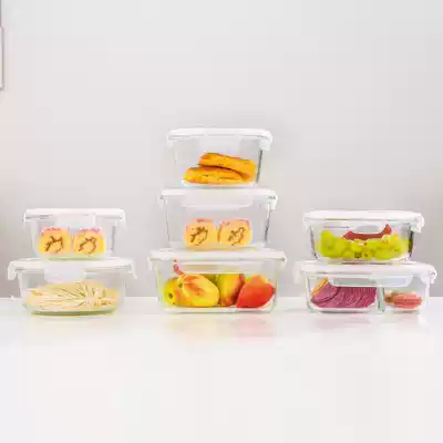 Lilac glass crisper microwave oven special transparent rectangular round Bento sealed bowl lunch box with lid