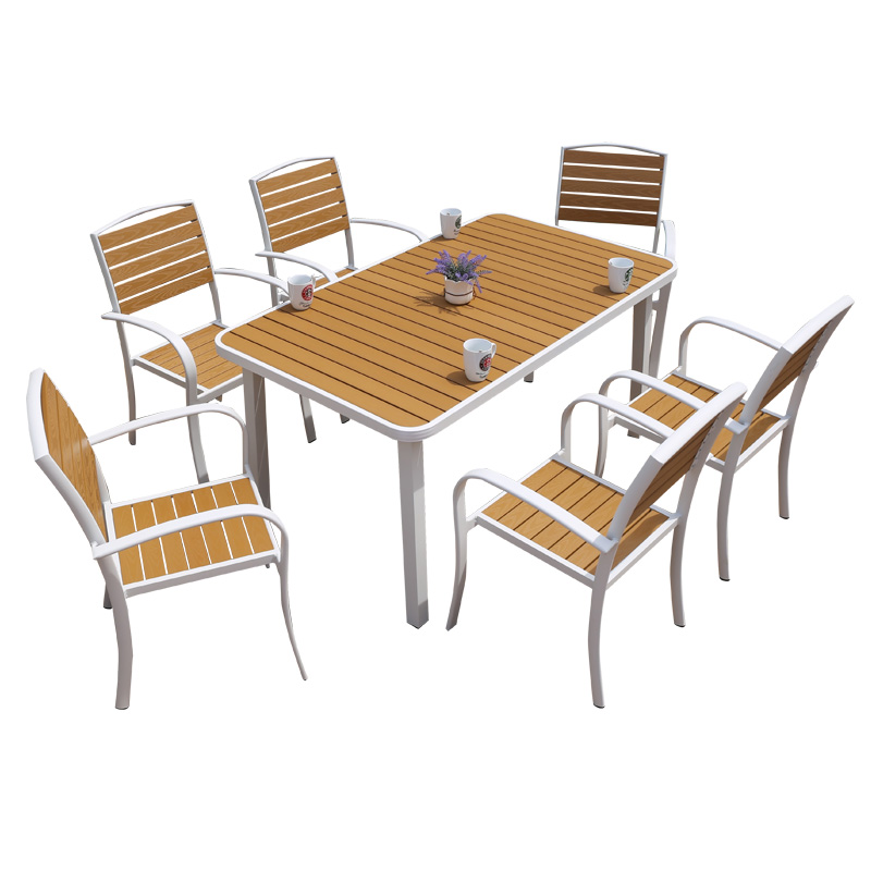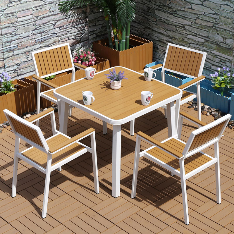 Outdoor table and chairs courtyard combined casual chair open air balcony corrosion resistant long table and chairs suit garden plastic wood table and chairs