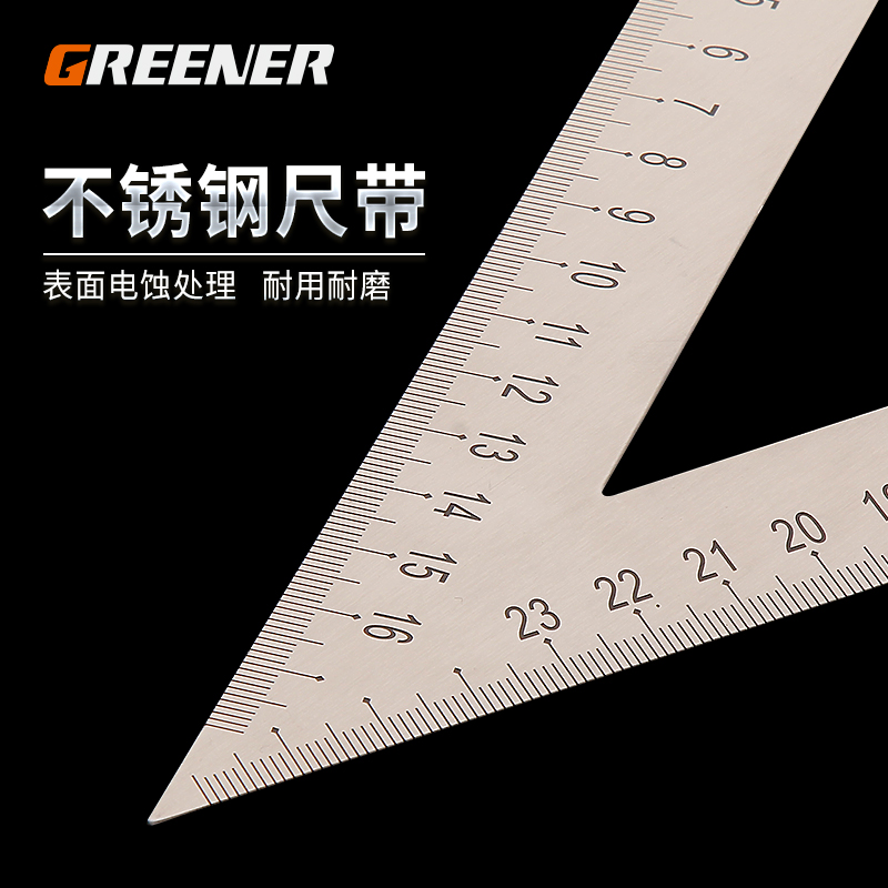 Green forest triangle ruler stainless steel 90 degrees thickened angle ruler turning ruler woodworking steel plate ruler 45 ° aluminum alloy measurement ruler