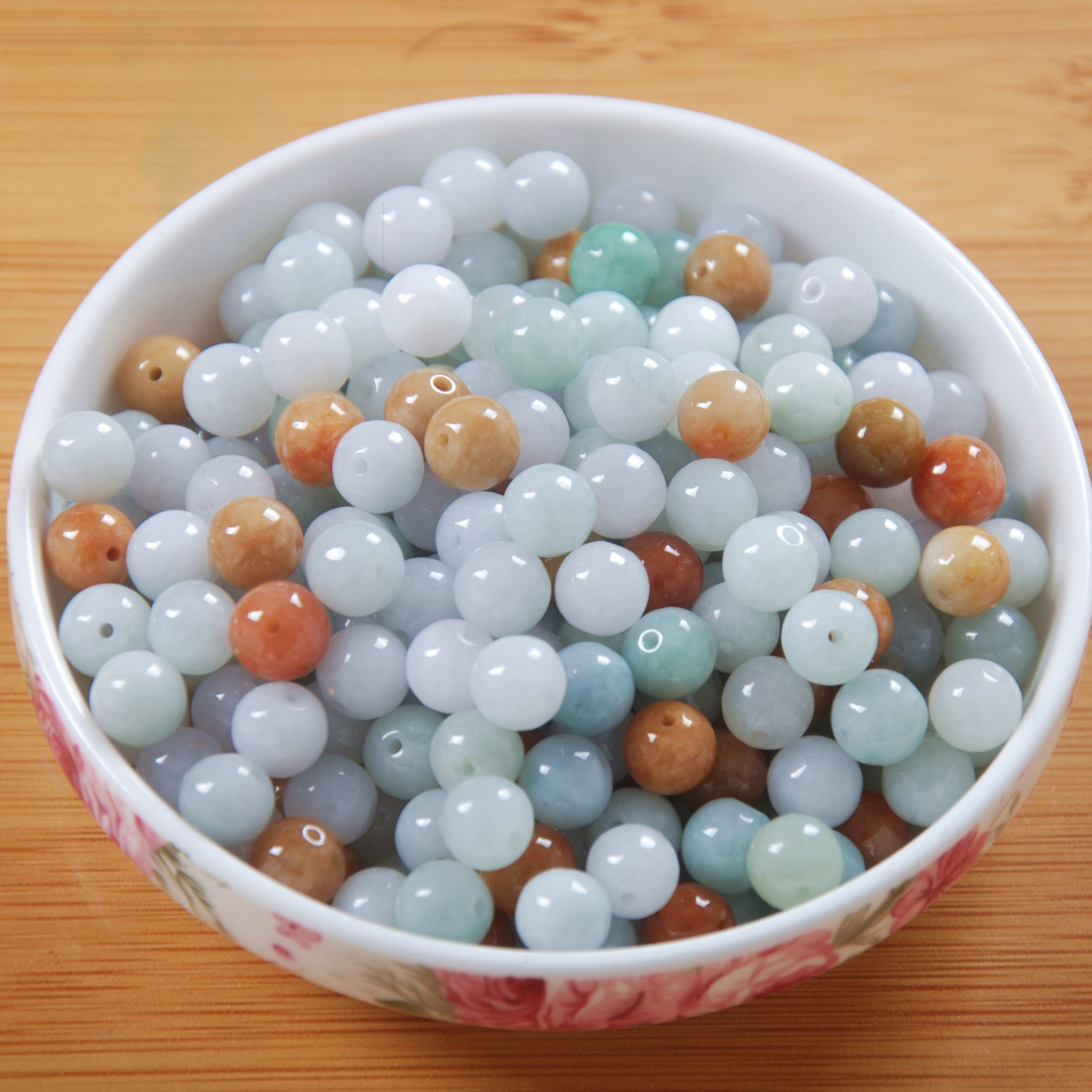 Natural Emerald Loose Bead A Cargo Oil Green Triple Colored Hand Necklace Diy Hand Woven Jade Ice Glutinous Seed Round Pearl Jade Beads