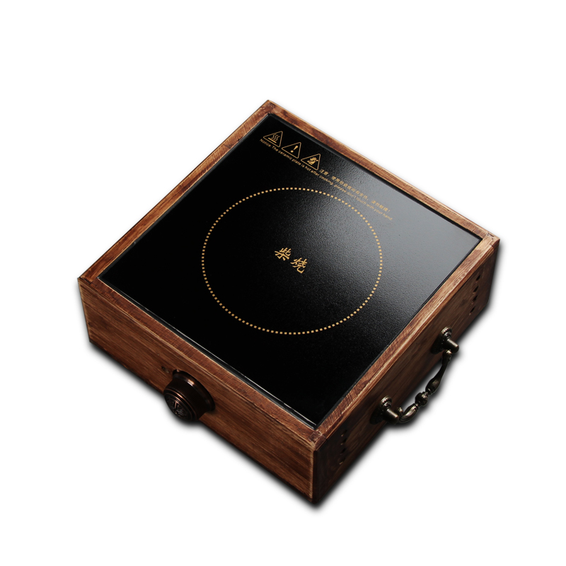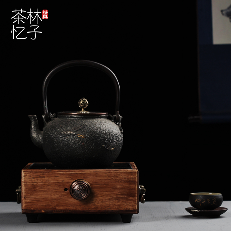 Tea set solid wood shell electric pottery stove Small retro silent tea brewer tea stove Household iron pot to burn water and electricity hot stove