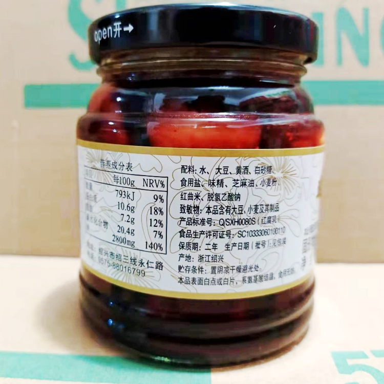 Water non-genetically modified soybean yellow wine white sugar edible salt MSG sesame oil wheat flour red yeast rice