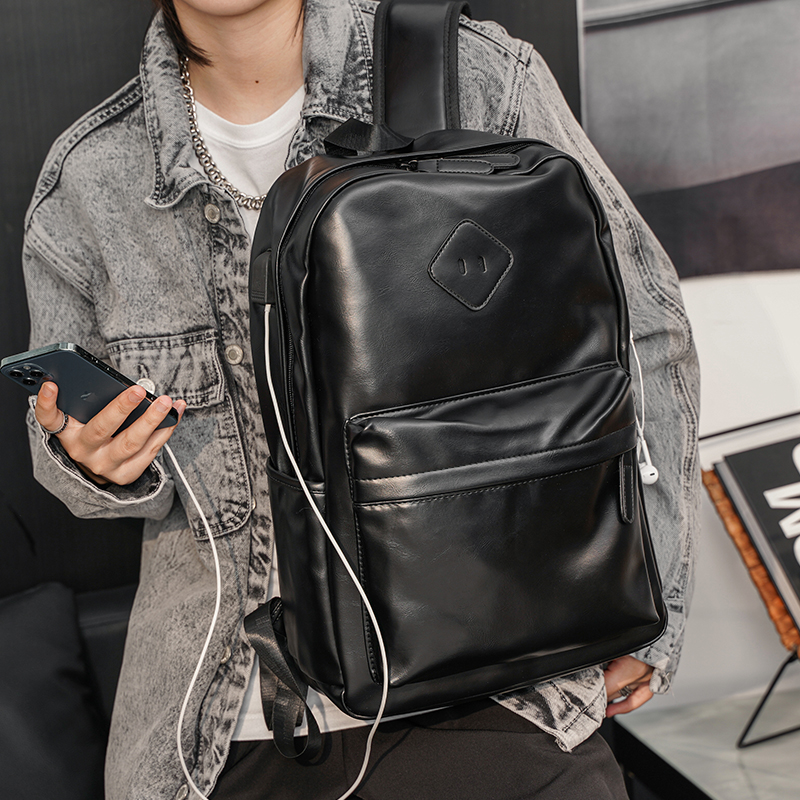 Trendy new men's backpack casual leather street backpack student schoolbag computer bag Korean version of the trend men's bag