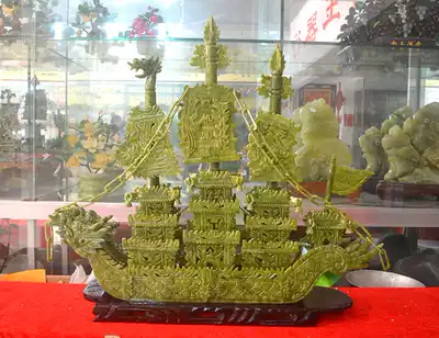 Natural turquoise 80CM jade dragon boat decoration smooth sailing living room company home decoration Hotel company gift