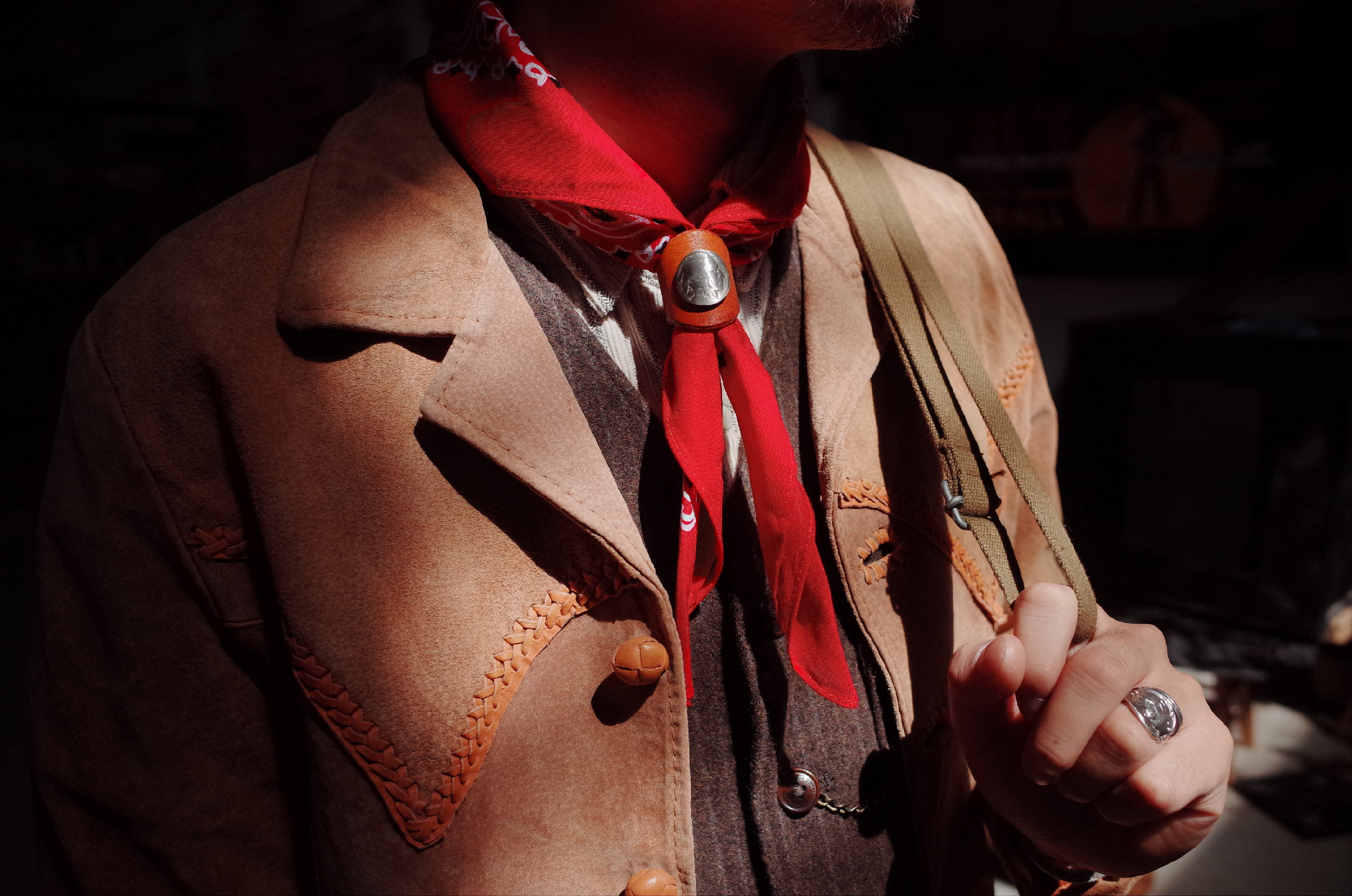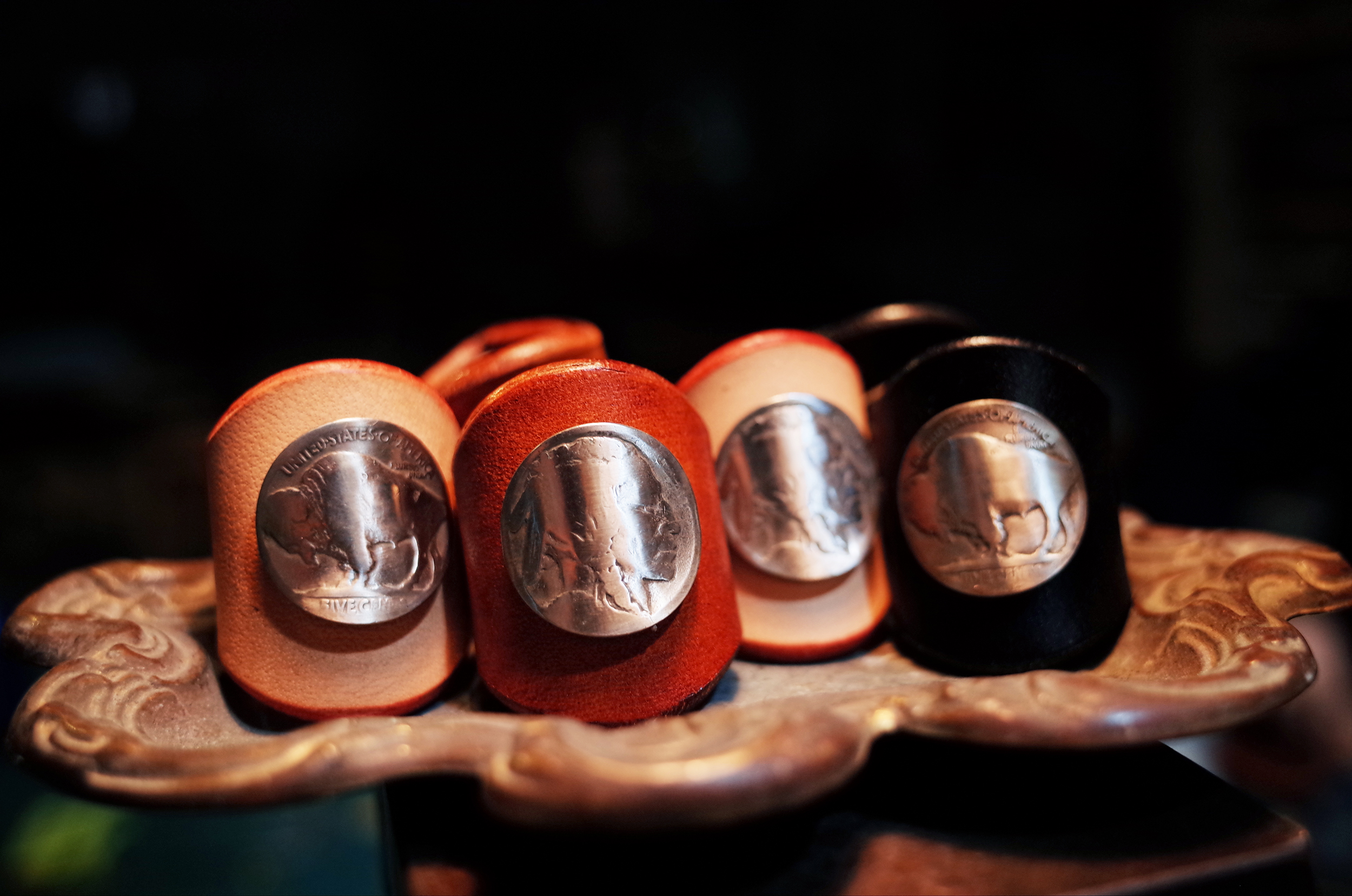 Old hawker leather American retro Ami Khaki motorcycle leather shield Indian silver coin scarf square buckle