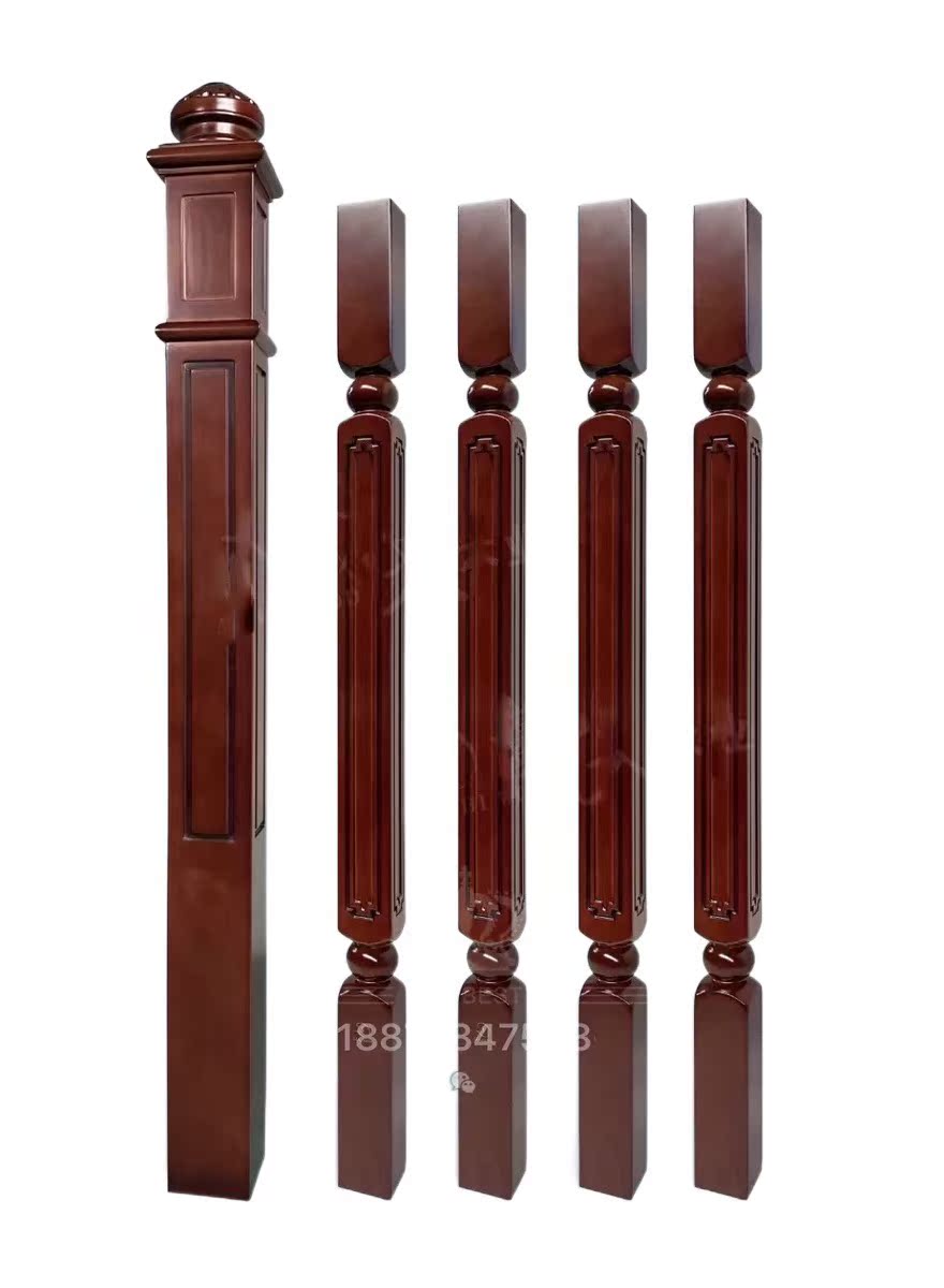 Changsha high-end staircase Customized solid wood log staircase handrail Balcony guardrail Modern minimalist square column