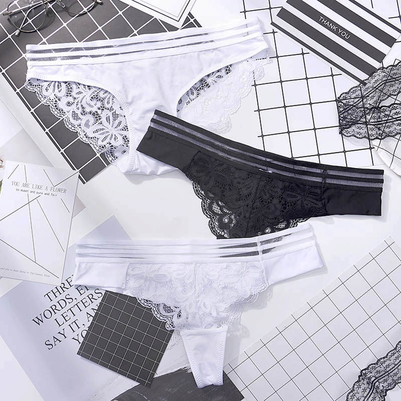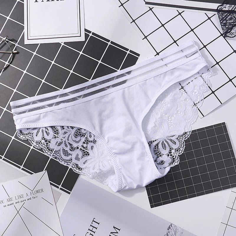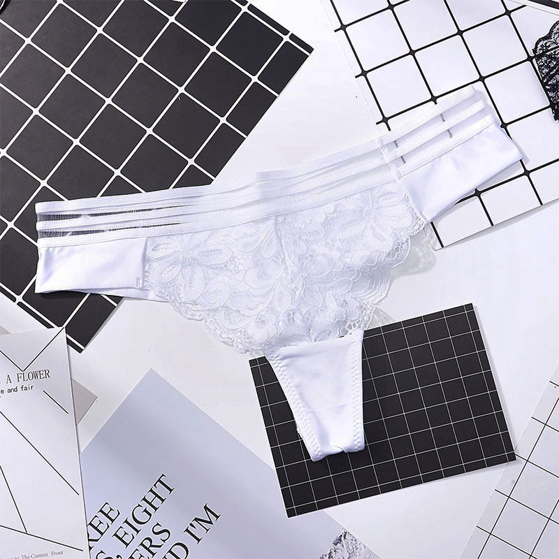 Sexy lace underwear Japanese low waist seamless female thong European and American hip wide T pants white half hip underwear