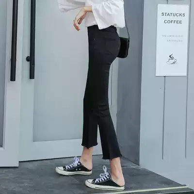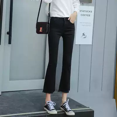 Jeans women's flared pants 2021 spring and autumn new high-waisted Korean version thin first love student nine-point micro flared pants