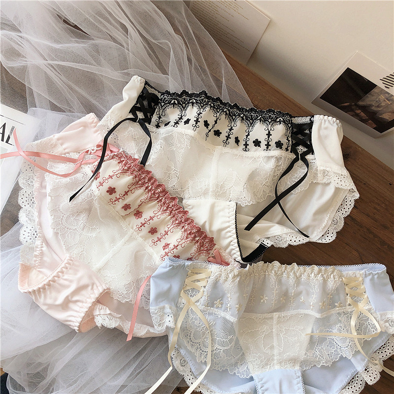 Japanese lace thin belt sexy see-through lace incognito panties Female low waist briefs girl student sweet and cute