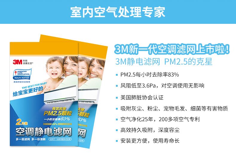 3M electrostatic air conditioning filter purification grade air dust filter filter 3 packs of 6 pieces to remove PM2 5