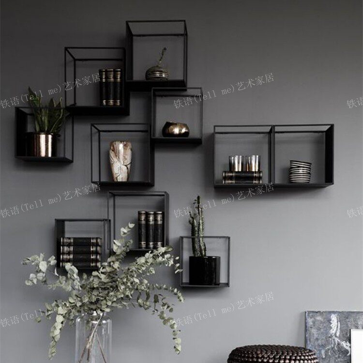 Creative loft wrought iron wall rack American industrial wind display decorative rack storage storage rack flower shop flower rack