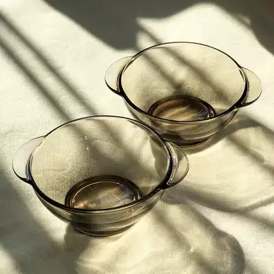 Nordic heat-resistant glass bowl 2-piece double ear bowl rice bowl soup bowl salad bowl microwave tea-colored glass
