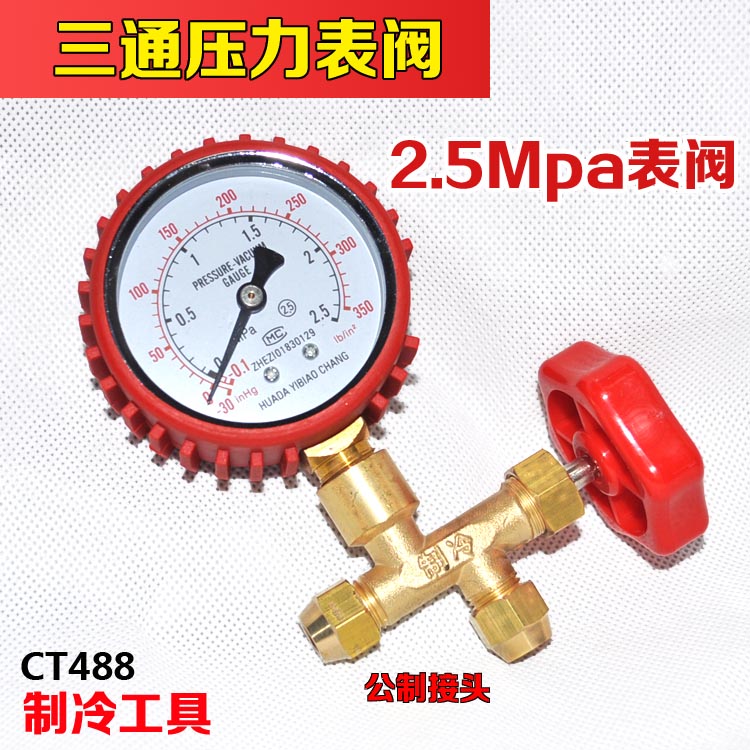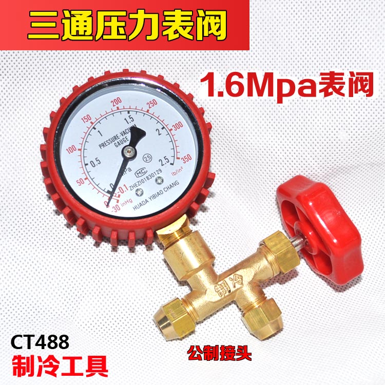 60 kg refrigerator press gauge CT488 pressure watch valve leak meter 6mpa fluorinated tripode valve