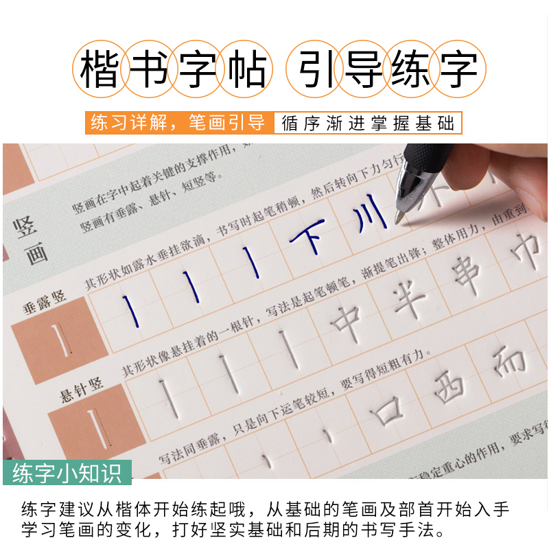 Copybook regular script practice copybook adult regular script control pen training boys and girls beautiful font hard pen calligraphy practice calligraphy junior high school students beginners adult handwriting basics entry high school students college students Xingkai fountain pen name track groove writing copybook