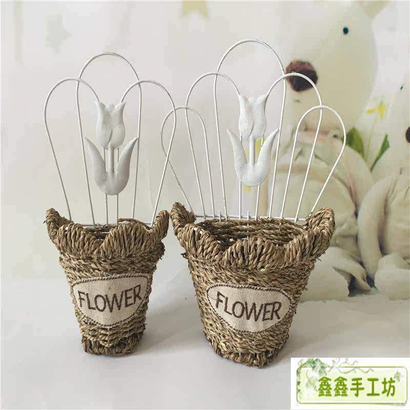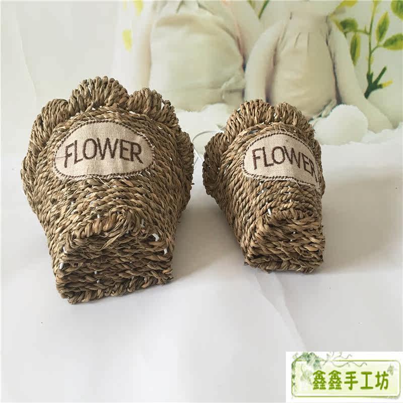 Straw woven flower basket Dried flower basket Rattan woven flower basket Vintage handicrafts