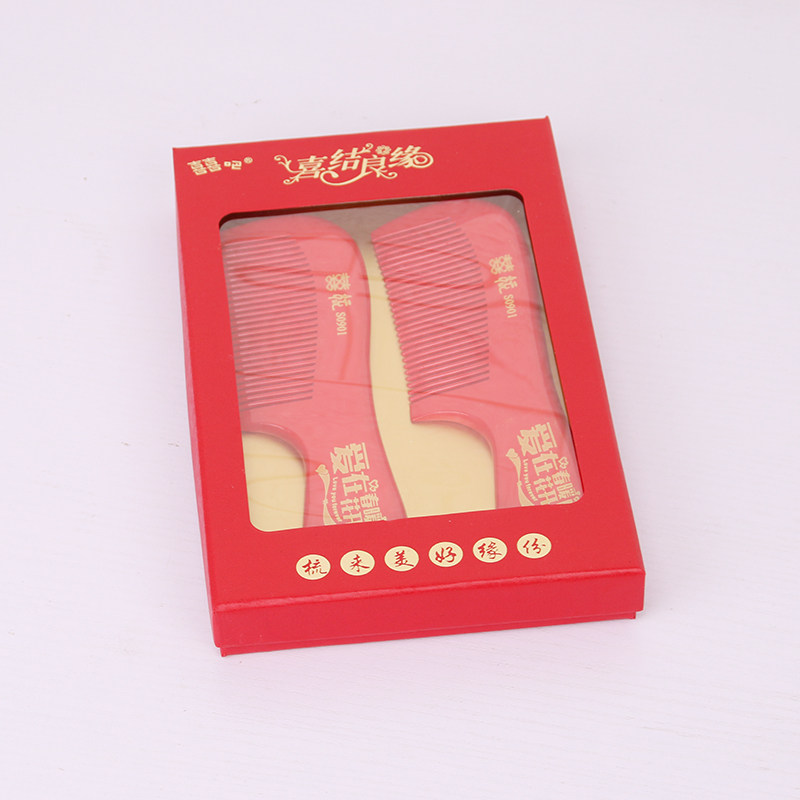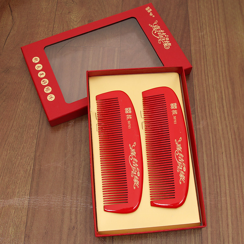 Wedding supplies bride engagement dowry items red wooden comb grate festive plastic comb gift box