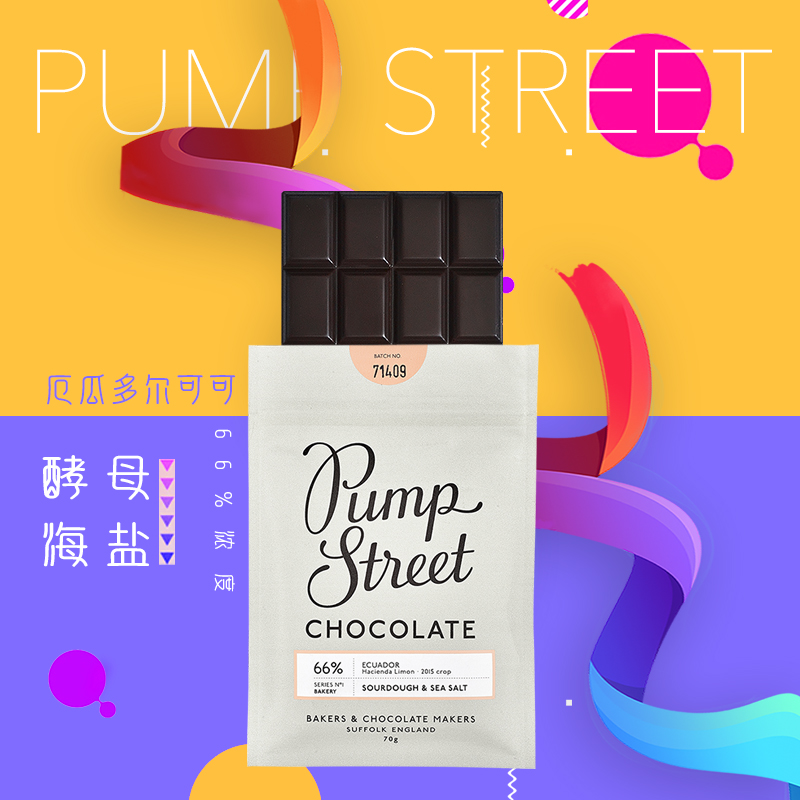 UK imported high end Pump Street 66% bread crushed sea salt dark chocolate row cocoa butter 70g