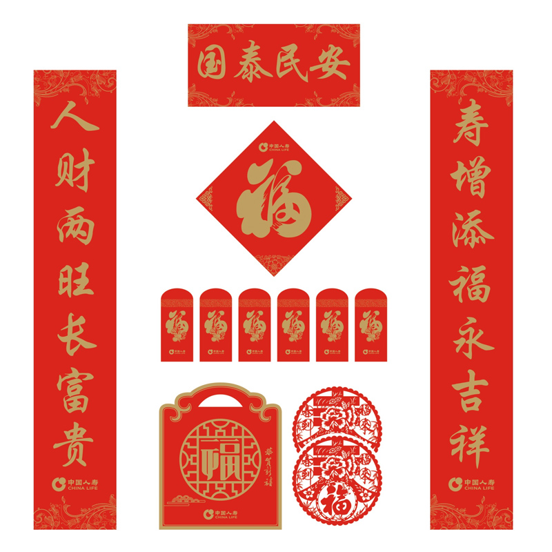 Advertisement New Year Spring Festival couplets to customize the bank to make Taiping Fufu characters red envelopes insurance big gift packages Inprint logo blank