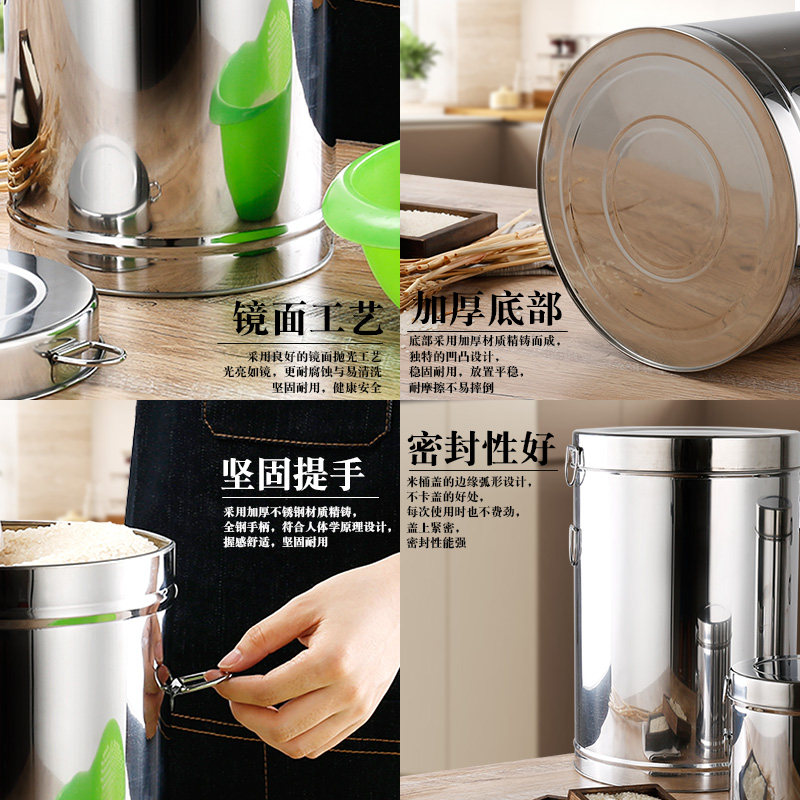 Rice barrel Home Insect-proof moisture-proof sealing barrel face 50 catty of rice cylinder 10 flour storage tank 304 stainless steel fitting rice box