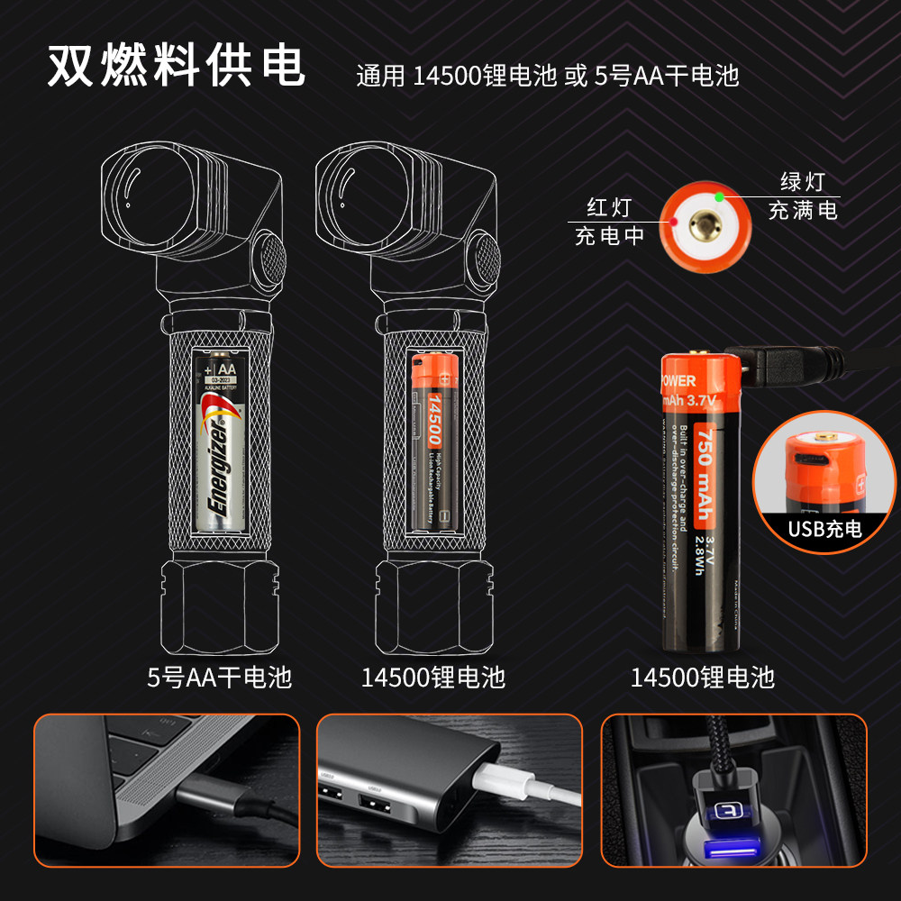 Re - Rong USB Charging Power Small Flash Flash Portable Multi - function ultra - bright Waterproof Strong Magnetic Mini Corner Flash B74