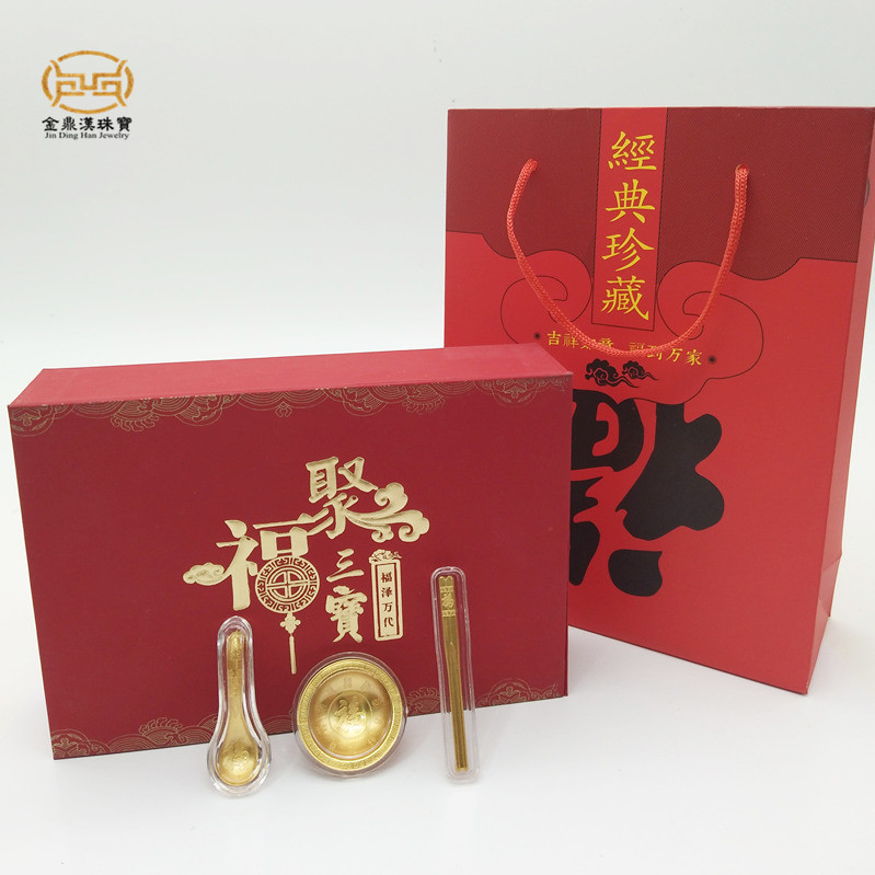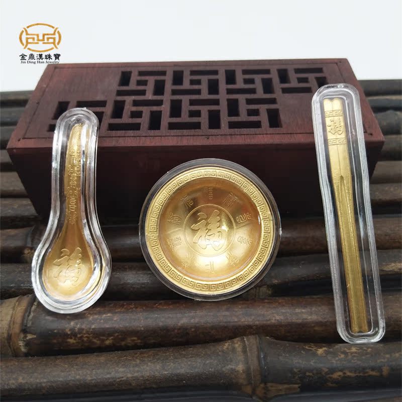 Gold Leaf Polyfu Tripl Gold Bowl Chopstick Investment Collection Swing Piece Insurance Bank Tiger Year of Lunar New Year Kaimen Red Gift Customization