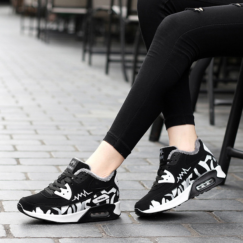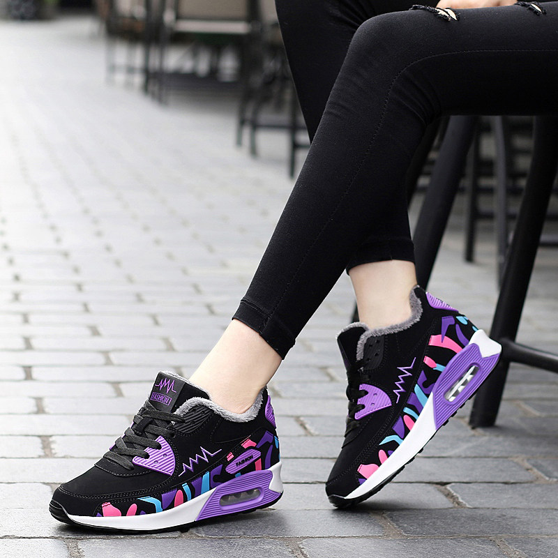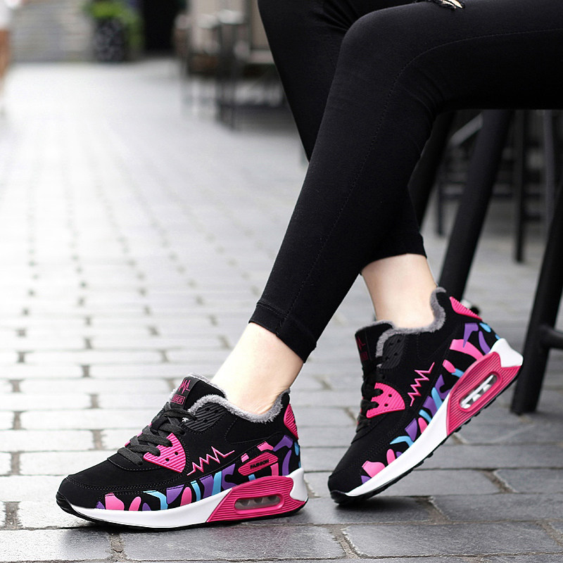 Winter girls plus fleece travel shoes warm cotton shoes women's shoes high school junior high school students Korean casual sports shoes