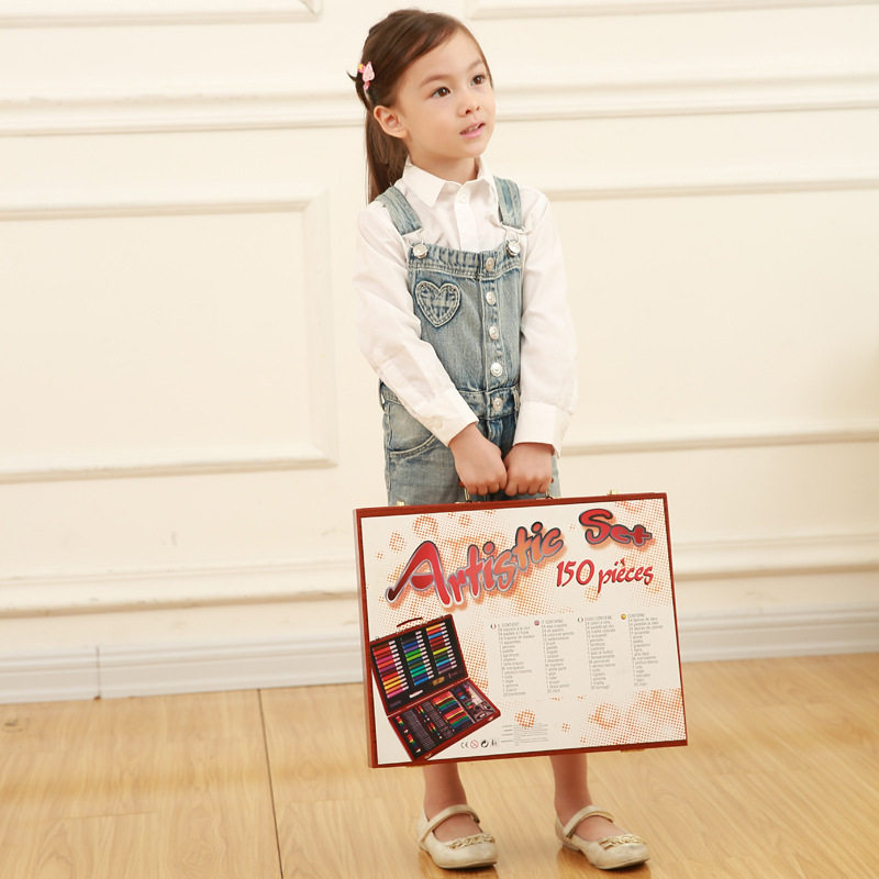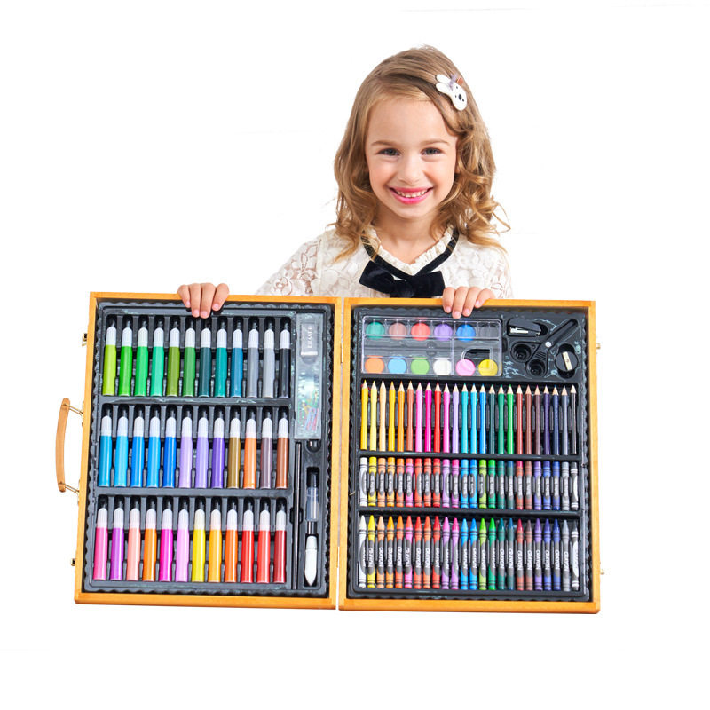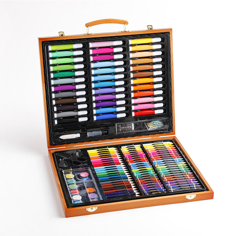 150 pieces Wooden Case Stationery Suit Elementary School Students Watercolor Pen Pencil Crayon Art Birthday Gift Study Painting