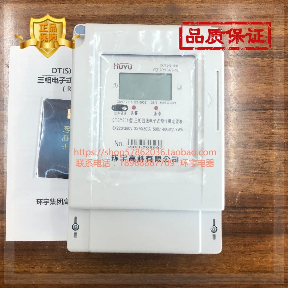 HUYU electronic three-phase four-wire prepaid energy meter DTSY881-3*15(60)A-30(100)A