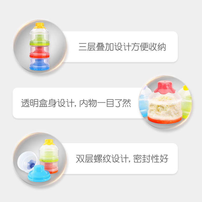 Bay Milk Powder Box Large Capacity Independent Opening Triple Milk Powder Box Portable Sanitary Milk Powder Box