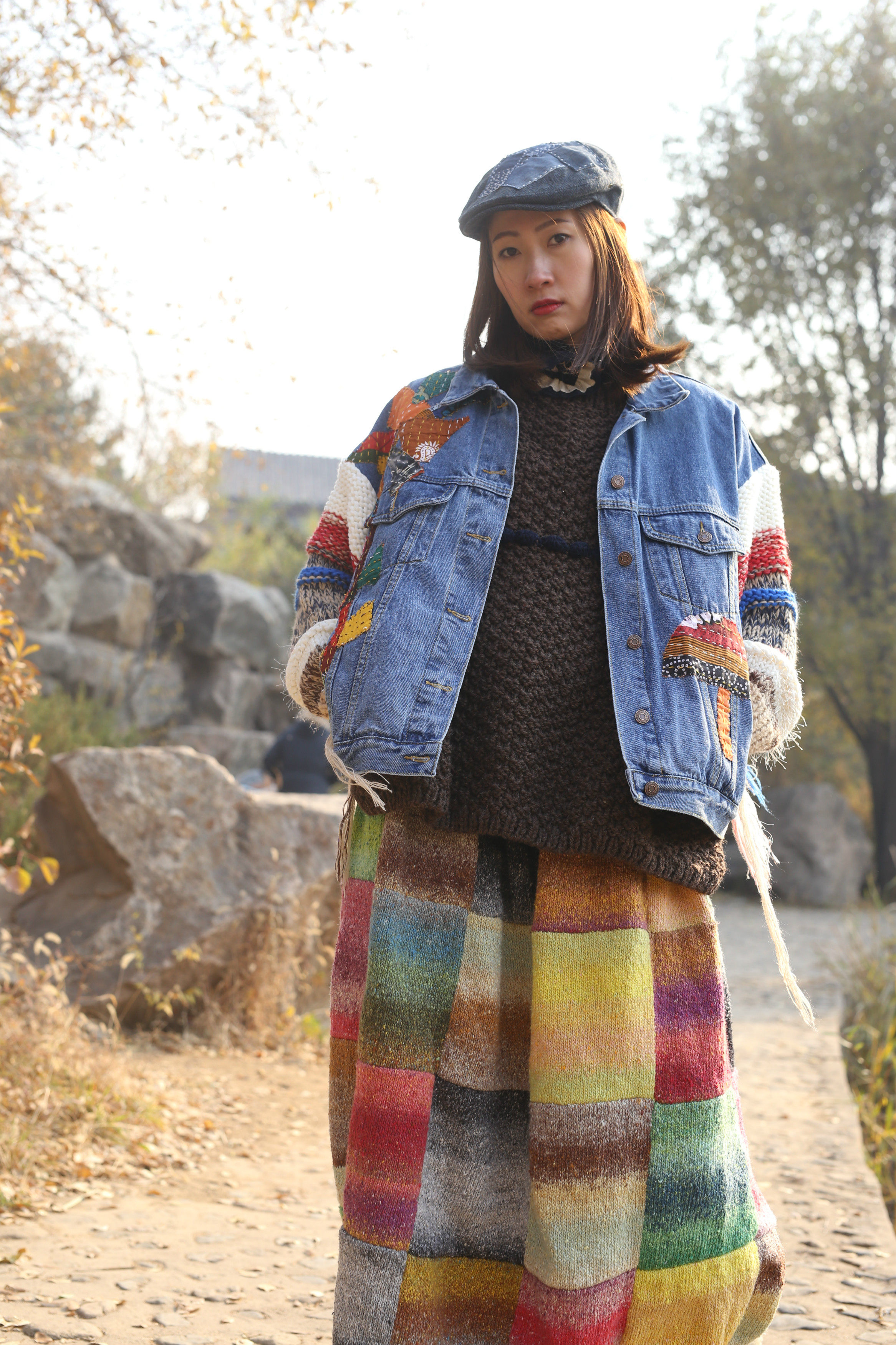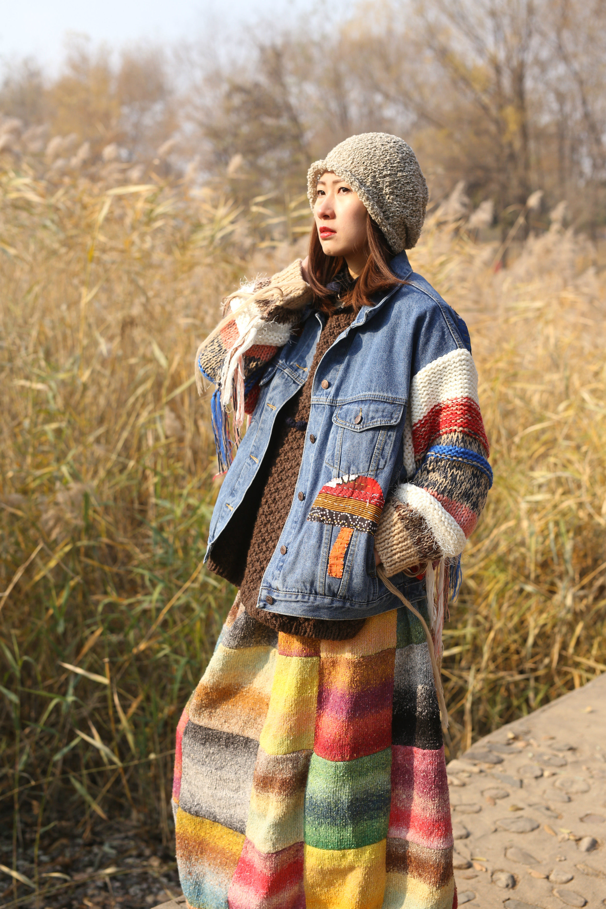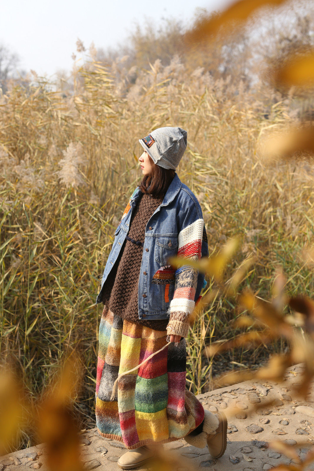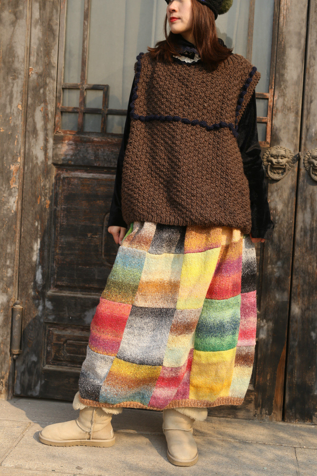 Furano's flower~original literary fan retro pure handmade cotton silk thread knitting color block skirt
