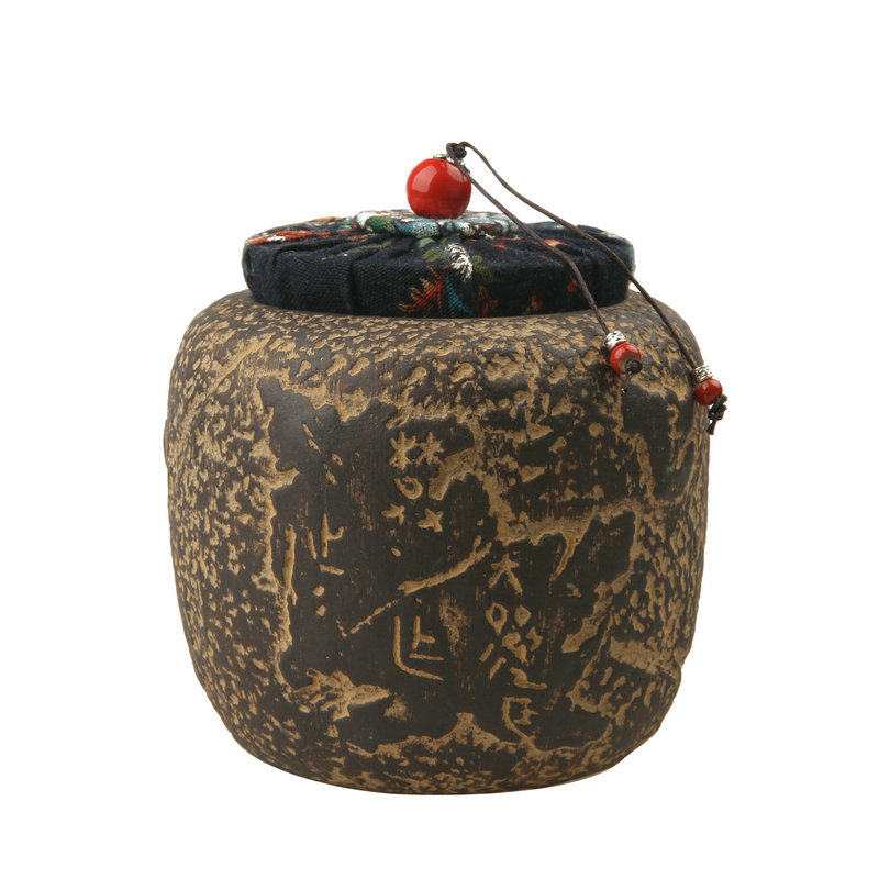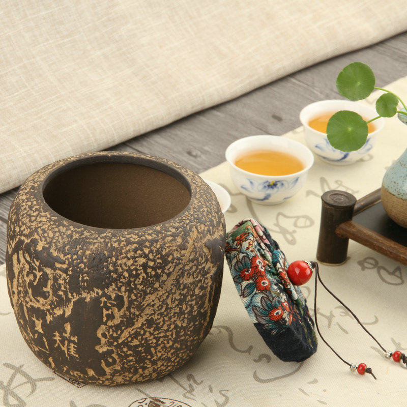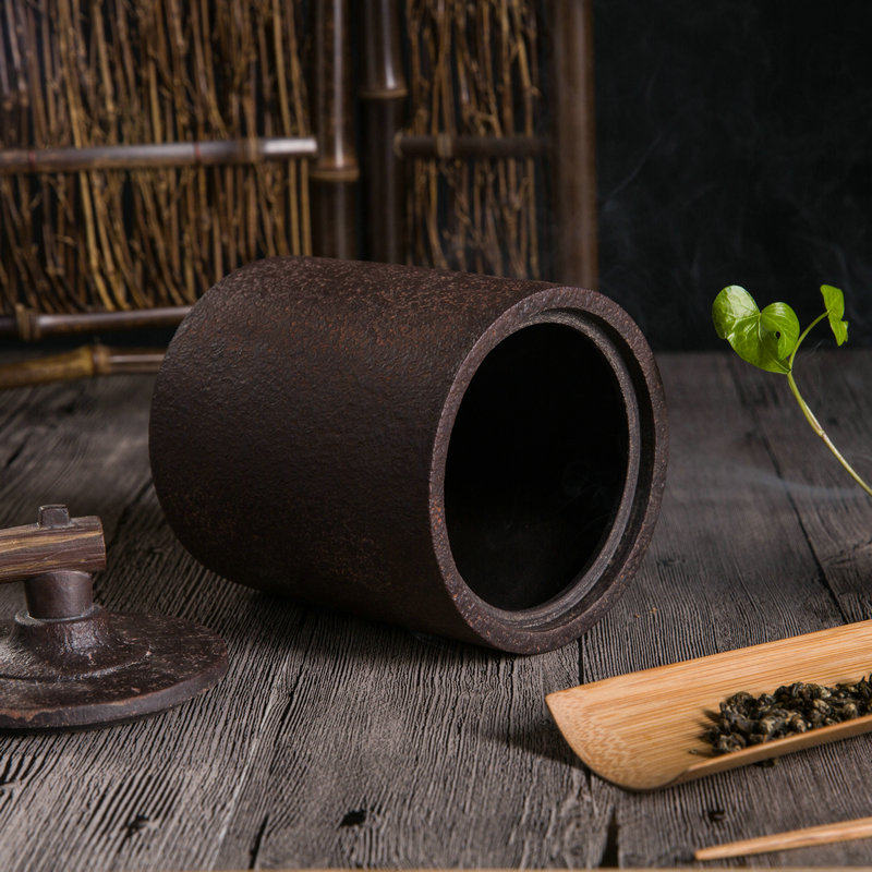 Rough pottery tea can Yixing purple sand antique tea storage device imitation iron general can Pu'er wake up tea can storage dust-proof tea set