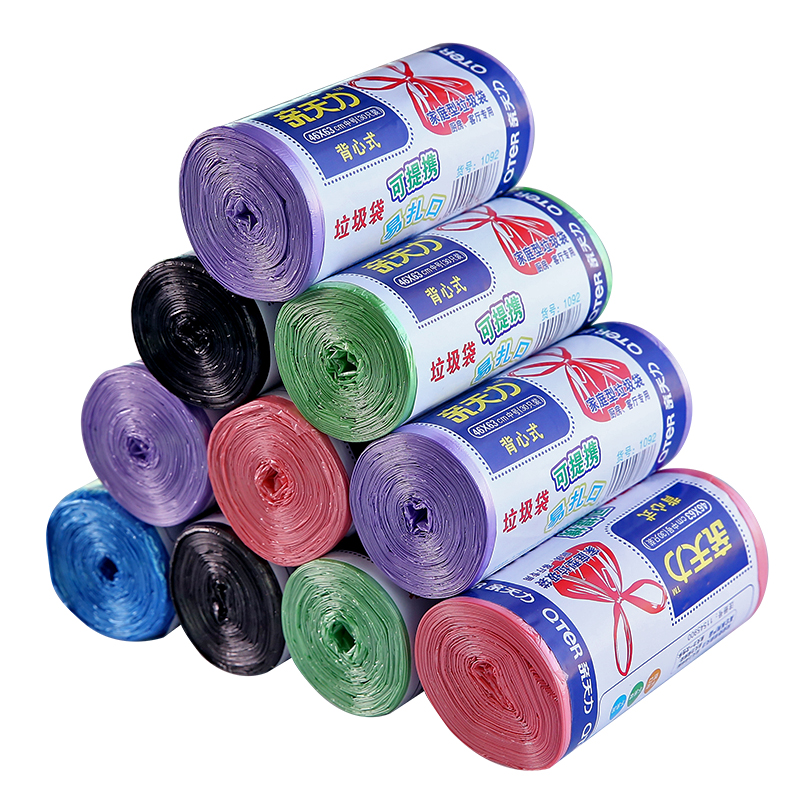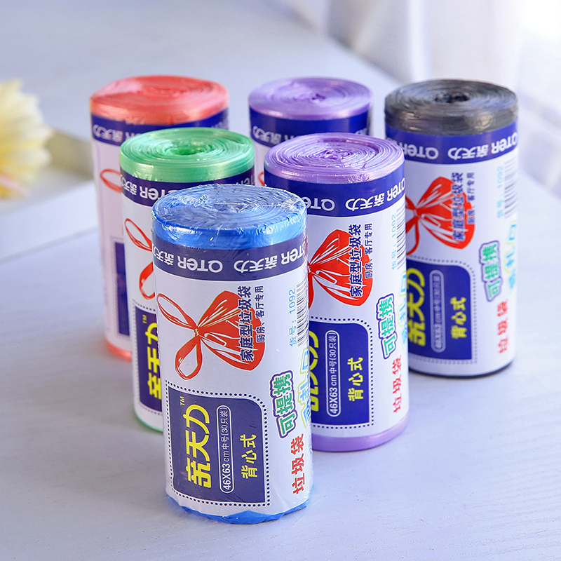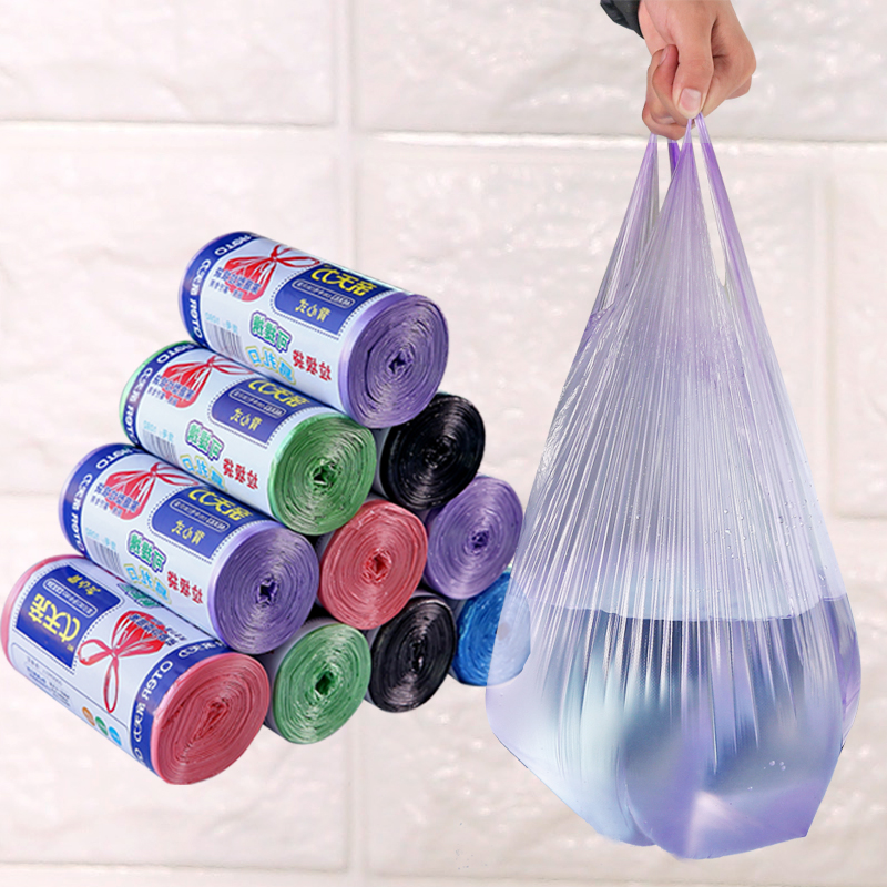 Home thickened large disposable portable vest garbage bag roll kitchen household black plastic bag medium