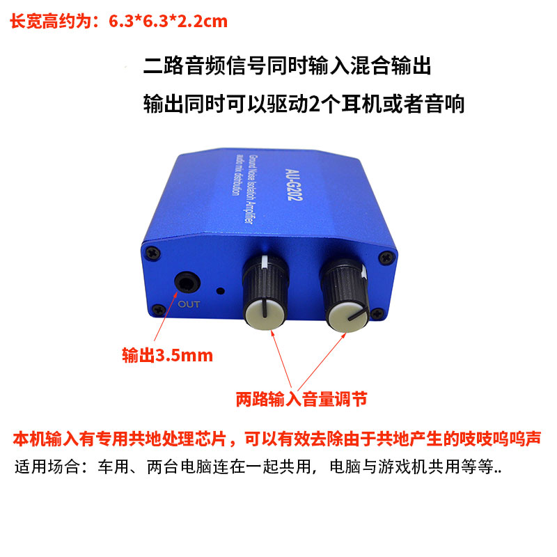 Audio 2-way input 2-in-1 output mixer Car audio Computer game console Common ground noise isolator