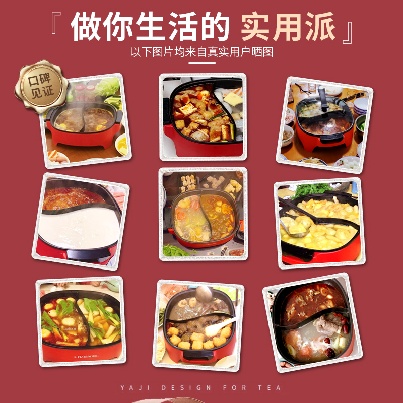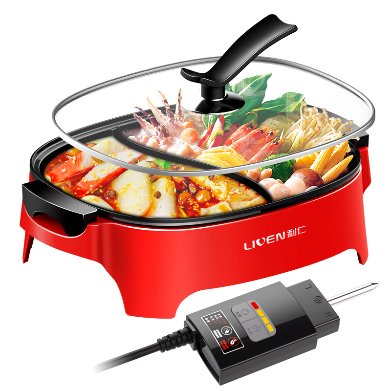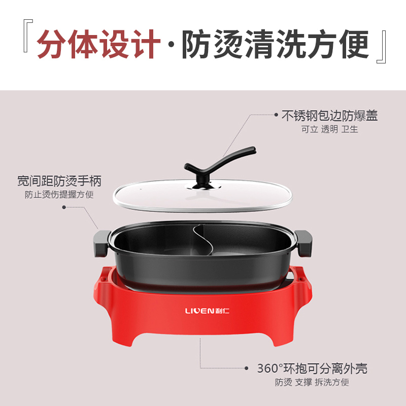 Li Ren electric Mandarin duck pot Electric hot pot Household multi-function pot Electric pot fast cooking pot Fire hot pot Barbecue all-in-one pot