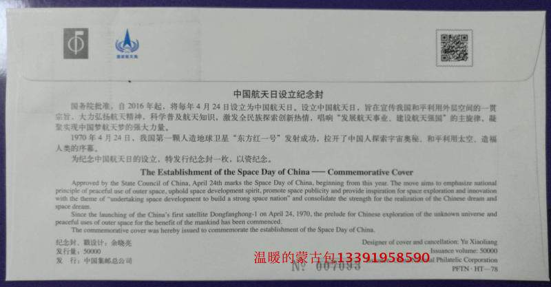 Head Office Aerospace Series No. 78 Commemorative Envelope (Commemorative Envelope for China Aerospace Day)