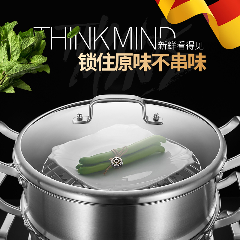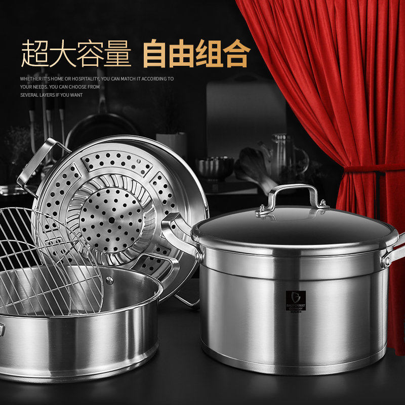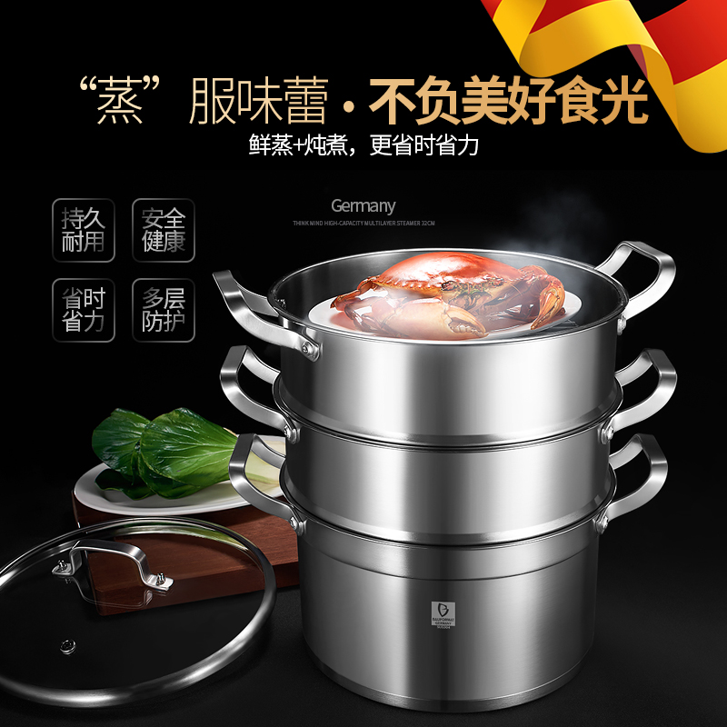 Germany large capacity steamer 304 stainless steel three-layer thickened household steamer 3 small multi-layer large steamer import