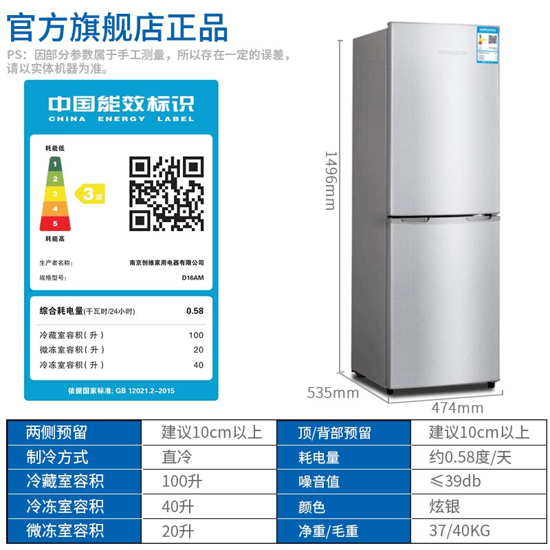 Skyworth D16AM 160 liters power saving energy saving small refrigerator double switch two doors 2 refrigerated freezer home dormitory specials