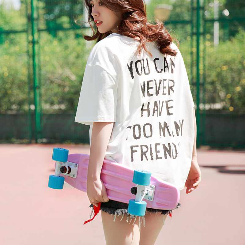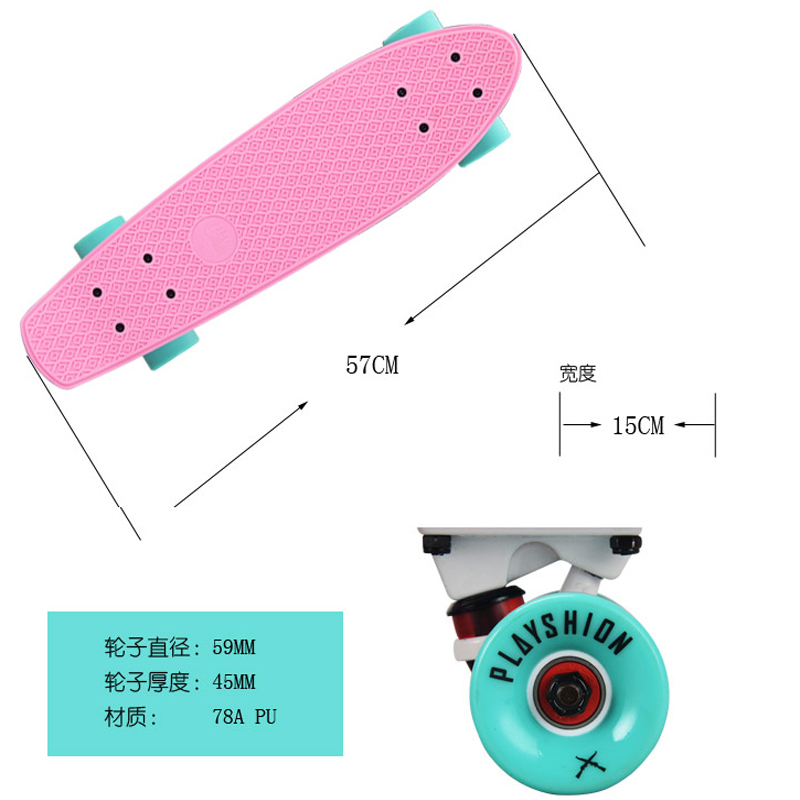 Peschamps Skateboard Small Fish Board Four Wheels Skateboard Adults Teenagers Skateboard Banana Board Four Wheels Road Boards