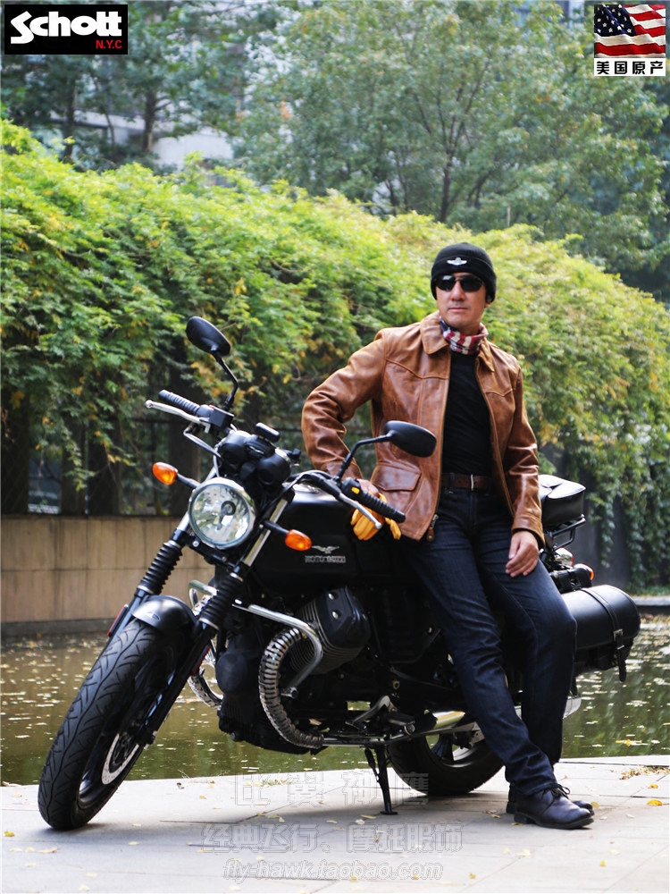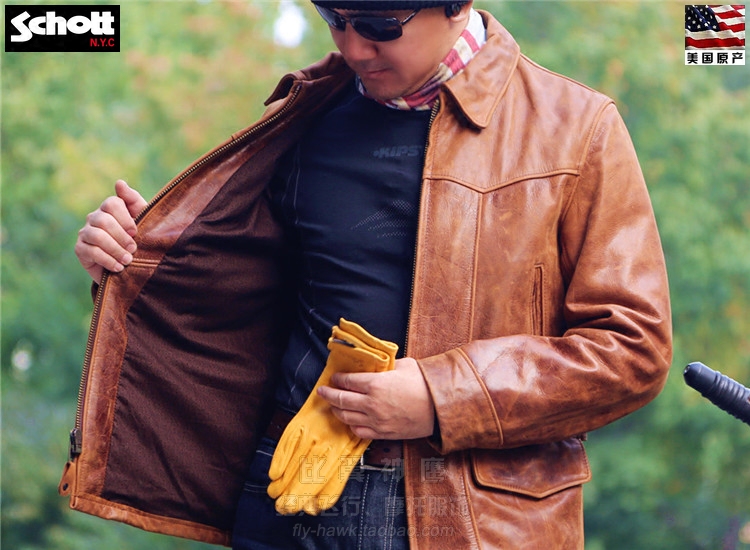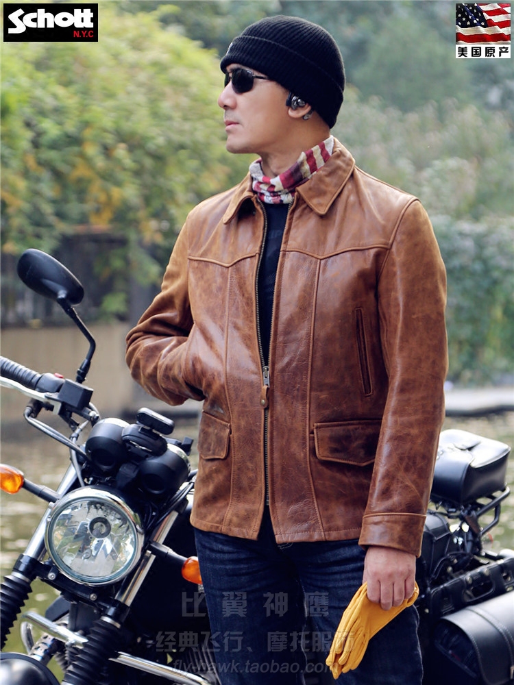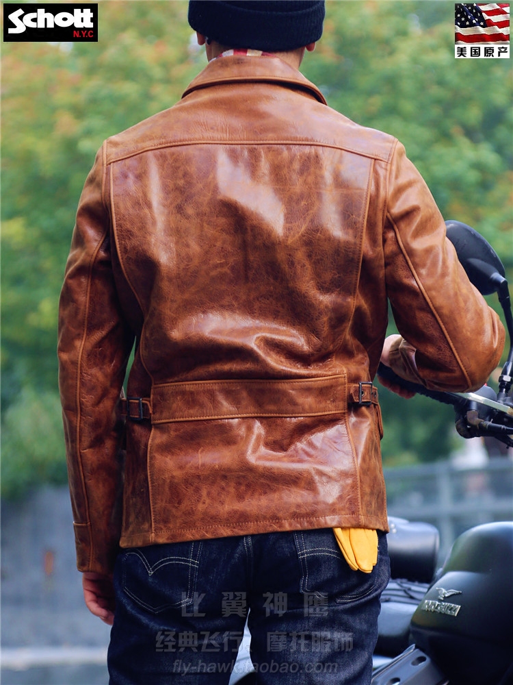 Schott NYC US production of new retro headlayer wax cow leather Postman Flying Leather Jacket#532