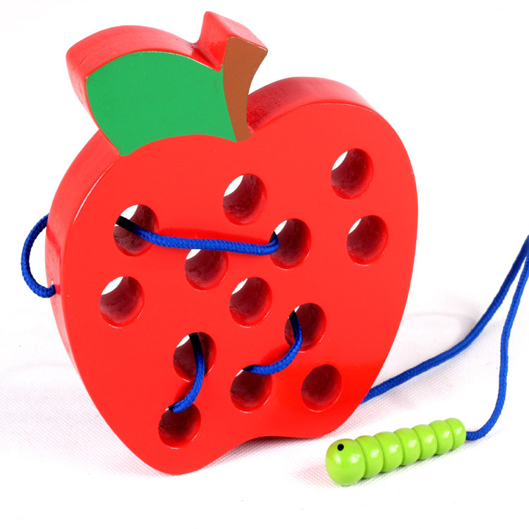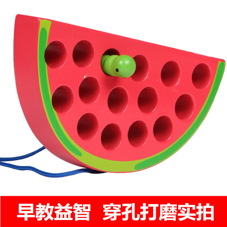 Insects eat fruit, strawberry, fruit, wooden thread, rope toy, children's hand-eye coordination, educational education, early education