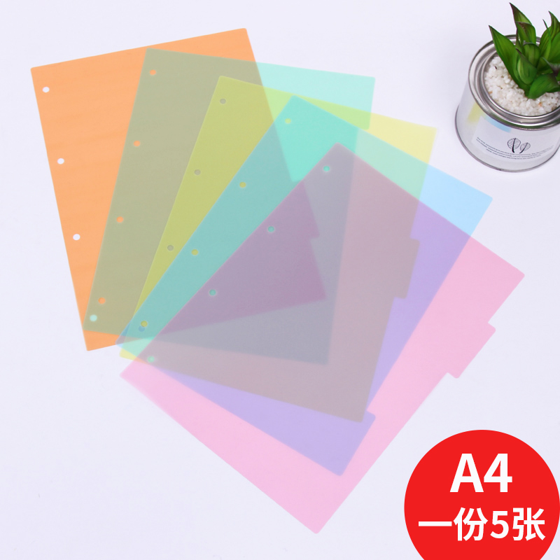 PP plastic paginated paper color a4 separator paper 4 hole A4 loose-leaf paper sorting page handwriting notepad subindex paper