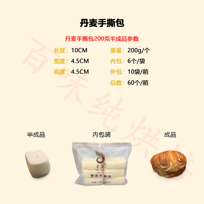 Oquinate Tear Bag Breakfast Bag Frozen Semi-finished Products 200g * 60 Boxes Frozen Danish Hands Torn Bread